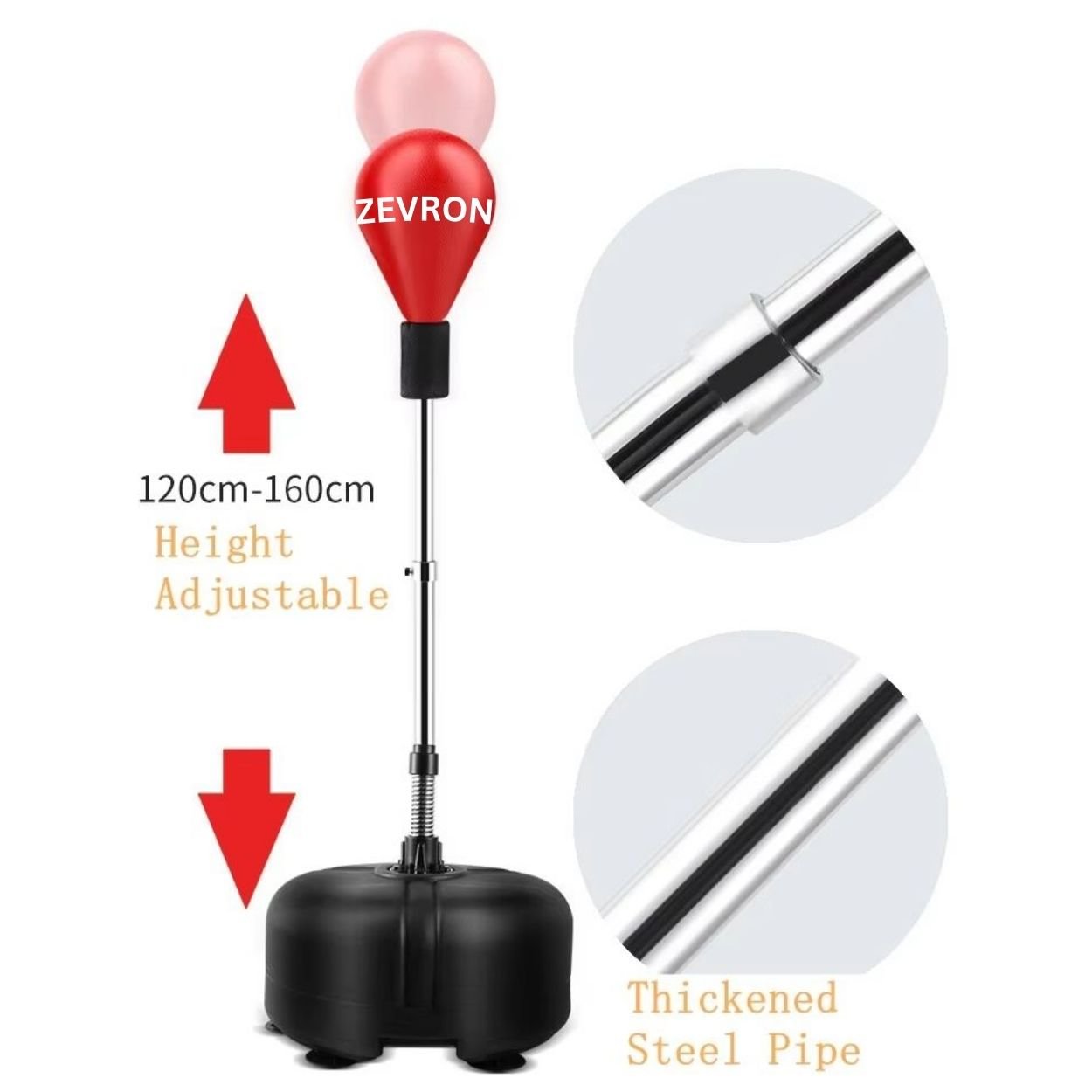 Zevron Martialart introduces the height-adjustable boxing punching bag, ideal for reflex training, speed drills, and precision punching exercises. Featuring a large suction cup base, this punching target stays stable during high-intensity workouts. Its durable construction ensures longevity, while the adjustable height makes it suitable for athletes of all sizes. Perfect for boxing, MMA, kickboxing, and fitness training, it enhances hand-eye coordination, speed, and agility, offering professional-grade performance for gyms, home workouts, and martial arts academies.